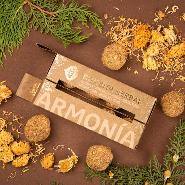 Las bombitas Herbal Armonía de Sagrada Madre son pastillas de defumación hechas a mano con una mezcla de hierbas y resinas naturales pensadas para equilibrar los espacios y promover una sensación de paz, armonía y bienestar.