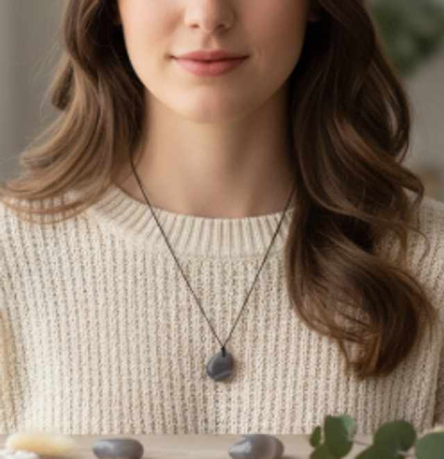 Cada colgante, con sus vetas y tonos únicos, refleja la belleza natural de la piedra y su capacidad para centrar y proteger. Ideal para quienes buscan un amuleto de conexión y serenidad.