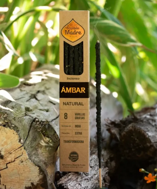 El incienso de Ámbar Natural de Sagrada Madre está elaborado con resinas naturales cuidadosamente seleccionadas para ofrecer un aroma cálido, dulce y profundamente reconfortante. Según la propia tradición de Sagrada Madre, el ámbar se utiliza para armonizar los espacios, suavizar las emociones y aportar sensación de contención y bienestar.