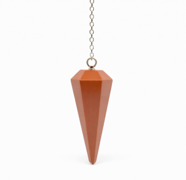 El péndulo de jaspe rojo se utiliza en radiestesia para trabajos relacionados con la energía física, la estabilidad y el anclaje. El jaspe rojo está tradicionalmente asociado a la fuerza vital, la acción consciente y la conexión con lo práctico, por lo que es adecuado para consultas orientadas a decisiones concretas y procesos que requieren firmeza.