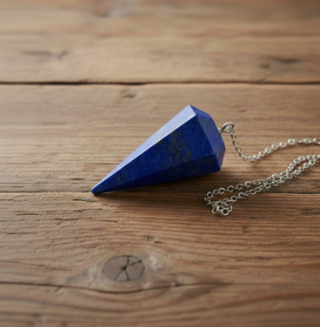 El péndulo de lapislázuli se utiliza en radiestesia para trabajos vinculados a la claridad mental, la comunicación consciente y la búsqueda de comprensión profunda. El lapislázuli está tradicionalmente asociado al discernimiento, la expresión auténtica y la conexión con la sabiduría interior, por lo que es adecuado para consultas que requieren honestidad y visión clara.