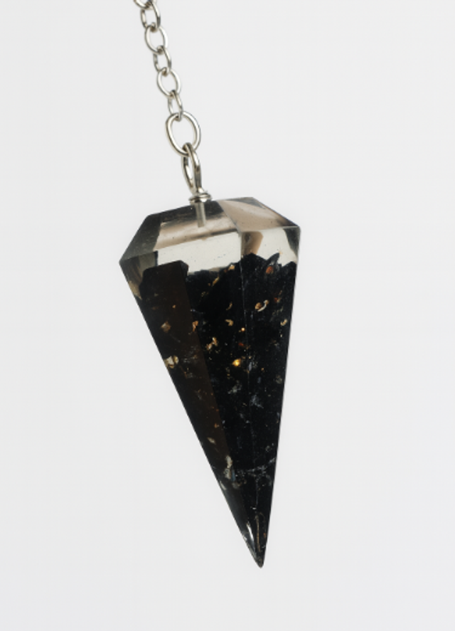 La orgonita, compuesta por resina y metal, actúa como soporte energético que ayuda a mantener una lectura constante y equilibrada, favoreciendo un uso fluido y estable del péndulo. Esta combinación resulta adecuada para comprobaciones generales y trabajos de percepción energética continuada.