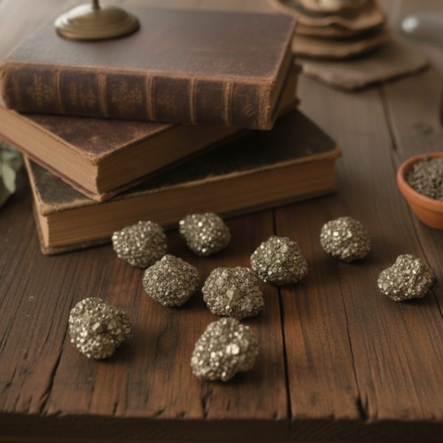 El rodado de pirita brilla como un pequeño tesoro terrestre, símbolo de fortaleza, confianza y energía vital. Su resplandor dorado invita a conectar con la abundancia y la determinación, recordándonos el poder de materializar nuestros propósitos con seguridad y claridad.